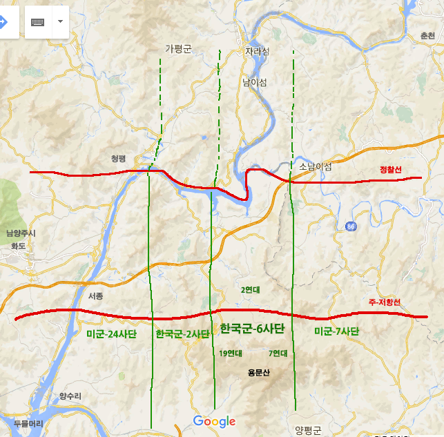 북한강 남쪽 지금의 미사리 일대에 배치된 6사단 2연대와