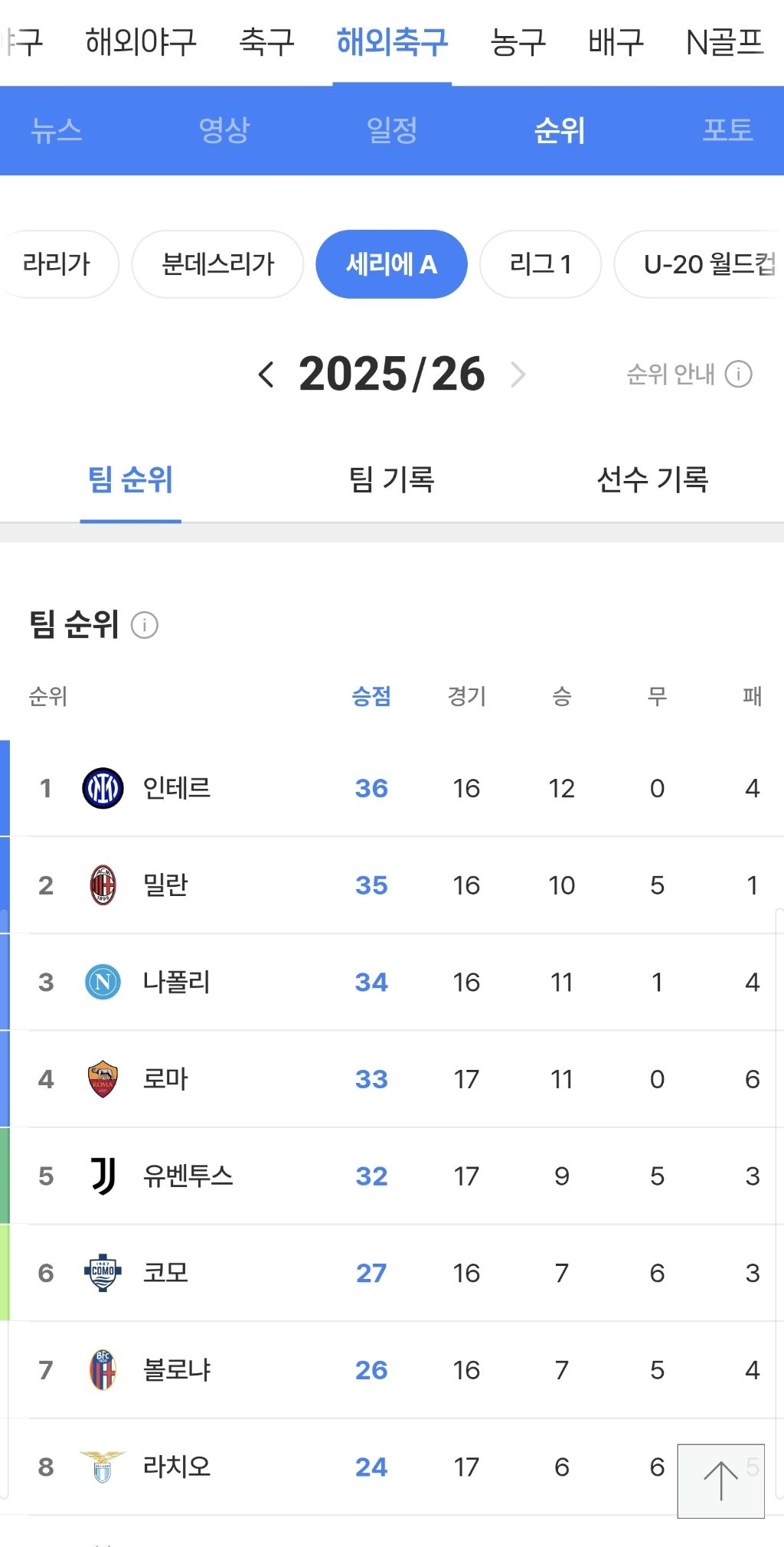 간만에 재밌는 세리에 순위 근황 작성자골든레트리버|작성시간25.12.31|조회수2,455 목록 댓글 7 글자크기 작게가 글자크기 크게가 정배들의 챔스경쟁 다음검색 현재 게시글 추가 기능 열기 북마크 공유하기 신고 센터로 신고 댓글 댓글 7 댓글쓰기 답글쓰기 댓글 리스트 답댓글 작성자v베르v | 작성시간 25.12.31 1황이라기엔 승점차가... 답댓글 작성자킬링보이스 | 작성시간 25.12.31 v베르v 그냥 그렇다고 해줍시다! 작성자Looolll | 작성시간 25.12.31 ㅋㅋㅋ 승점보소 작성자도발 제트어퍼 | 작성시간 25.12.31 승점차이가 저렇게 쫀쫀해야 긴장감이 넘치지 작성자버닝투 | 작성시간 25.12.31 그냥 초강팀이 없이 고만고만함 댓글 전체보기