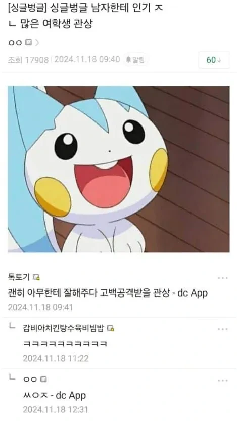 남자들한테 인기 ㅈㄴ 많을 여학생 관상 .JPG 작성자LEE NAKYUNG|작성시간25.12.31|조회수40,919 목록 댓글 10 글자크기 작게가 글자크기 크게가 다음검색 현재 게시글 추가 기능 열기 북마크 공유하기 신고 센터로 신고 댓글 댓글 10 댓글쓰기 답글쓰기 댓글 리스트 작성자늙어간다 | 작성시간 25.12.31 금휘? 작성자아이에 | 작성시간 25.12.31 사귀다가 금방 헤어짐.... 답댓글 작성자호주머니알주머니 | 작성시간 25.12.31 왜요?! 답댓글 작성자개소리를 조리있게 잘하는 | 작성시간 25.12.31 호주머니알주머니 너무 착해서 여기저기 다 챙겨주고남사친이 많아서 질투하게되면서 결국 나만 지쳐서 헤어짐 작성자아무무무아 | 작성시간 25.12.31 이런 애들이 ㄹㅇ 순수악임 ㅋㅋ 댓글 전체보기