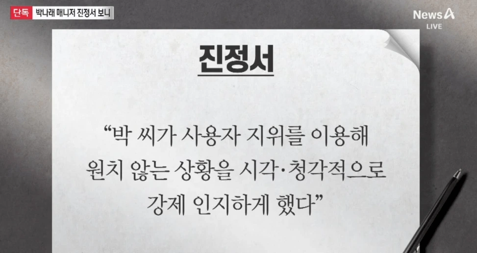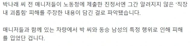 박나래 전매니저가 노동청에 제출한 진정서 내용