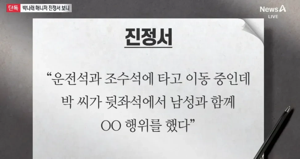 '매니저가 동승한 차량 뒷자석에서 남성과 특정행위'
