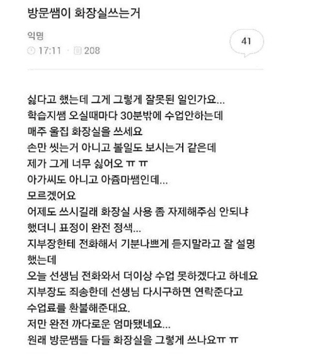 근데 아가씨든 아줌마든 상관없이 싫으면 싫은거지 아가씨도 아니고 아줌마쌤이라 싫다는건 좀..