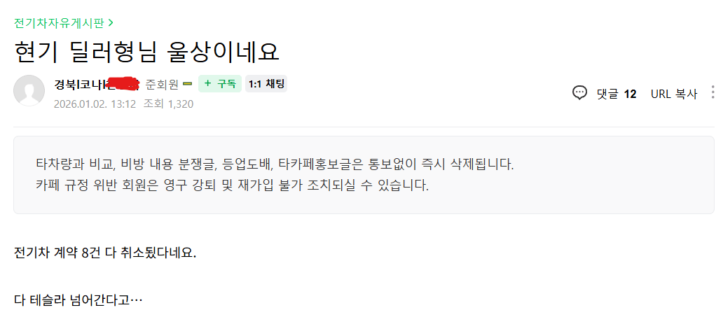 작성자삼땡 작성시간 26.01.04 하남 테슬라 매장은 항상 사람 많은디