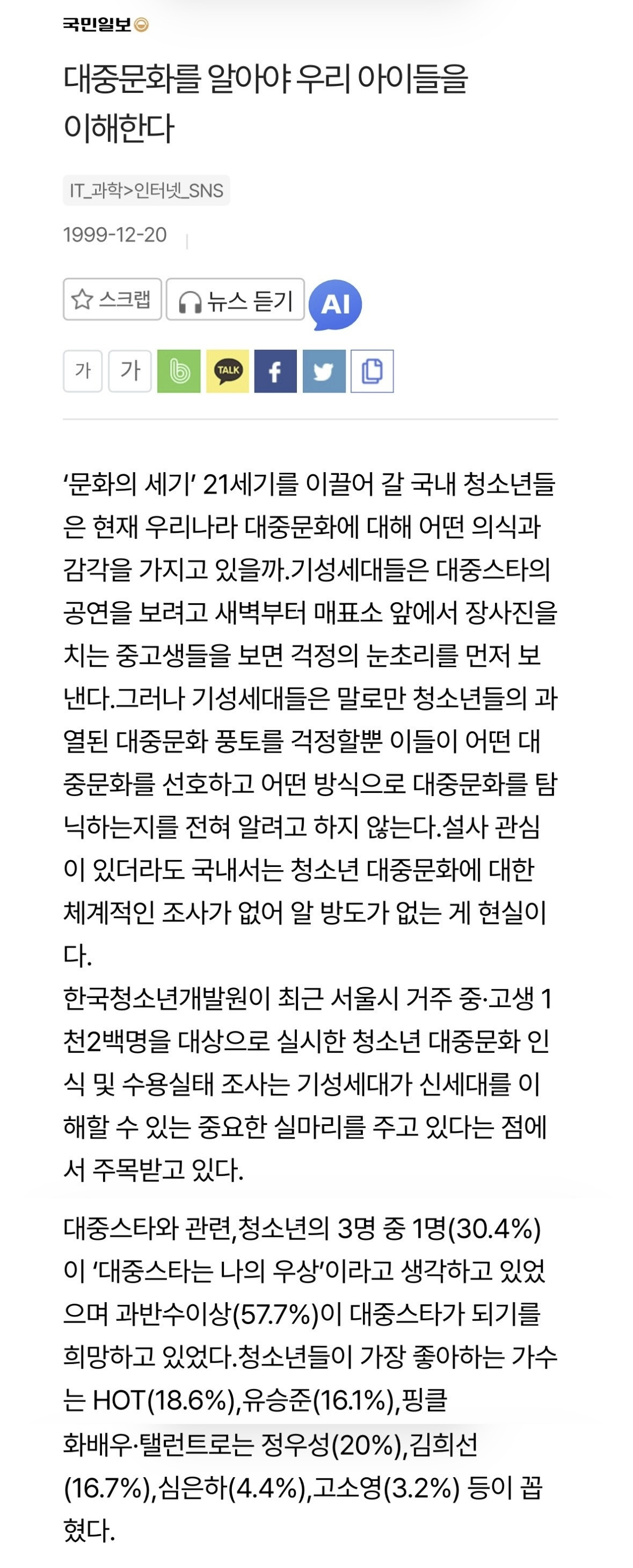 한국청소년개발원 <청소년 대중문화 인식 조사>