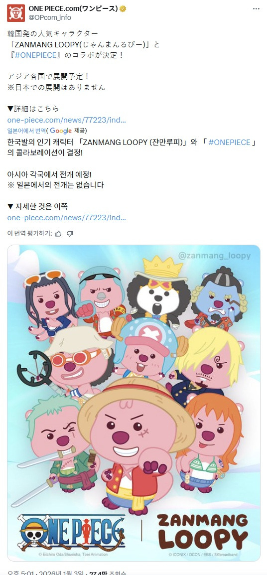 『원피스X잔망 루피』 콜라보레이션 진행 작성자슬기로운 생활|작성시간26.01.03|조회수3,477 목록 댓글 3 글자크기 작게가 글자크기 크게가 다음검색 현재 게시글 추가 기능 열기 북마크 공유하기 신고 센터로 신고 댓글 댓글 3 댓글쓰기 답글쓰기 댓글 리스트 작성자Sheldon | 작성시간 26.01.03 루피루피야 작성자찐덕 | 작성시간 26.01.03 아 개귀엽네 ㅋㅋㅋㅋ 작성자빨간지붕 | 작성시간 26.01.03 더블루피 댓글 전체보기