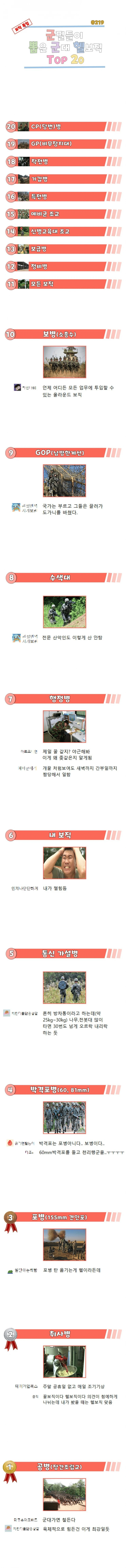 군필자들이 선정한 군대 헬보직 TOP 20 작성자LEE NAKYUNG|작성시간26.01.04|조회수2,683 목록 댓글 26 글자크기 작게가 글자크기 크게가 다음검색 현재 게시글 추가 기능 열기 북마크 공유하기 신고 센터로 신고 댓글 댓글 26 댓글쓰기 답글쓰기 댓글 리스트 작성자질내사정권유자 | 작성시간 26.01.04 60미리 똥포 - gop 취사 씨~발! 작성자소년을 위로해줘 | 작성시간 26.01.04 장간조립교 생각나네... 진짜 개힘들었는데 작성자흠냐륑.... | 작성시간 26.01.05 90미리가 없는게 말이됨? 작성자코로만마셔설탕 | 작성시간 26.01.05 Kh-179 진짜 개빡쌨음 ㅠㅠ 작성자북북벅벅 | 작성시간 26.01.23 수색대에서도 이제 k-3걸렸다?진짜 씨@발임 댓글 전체보기