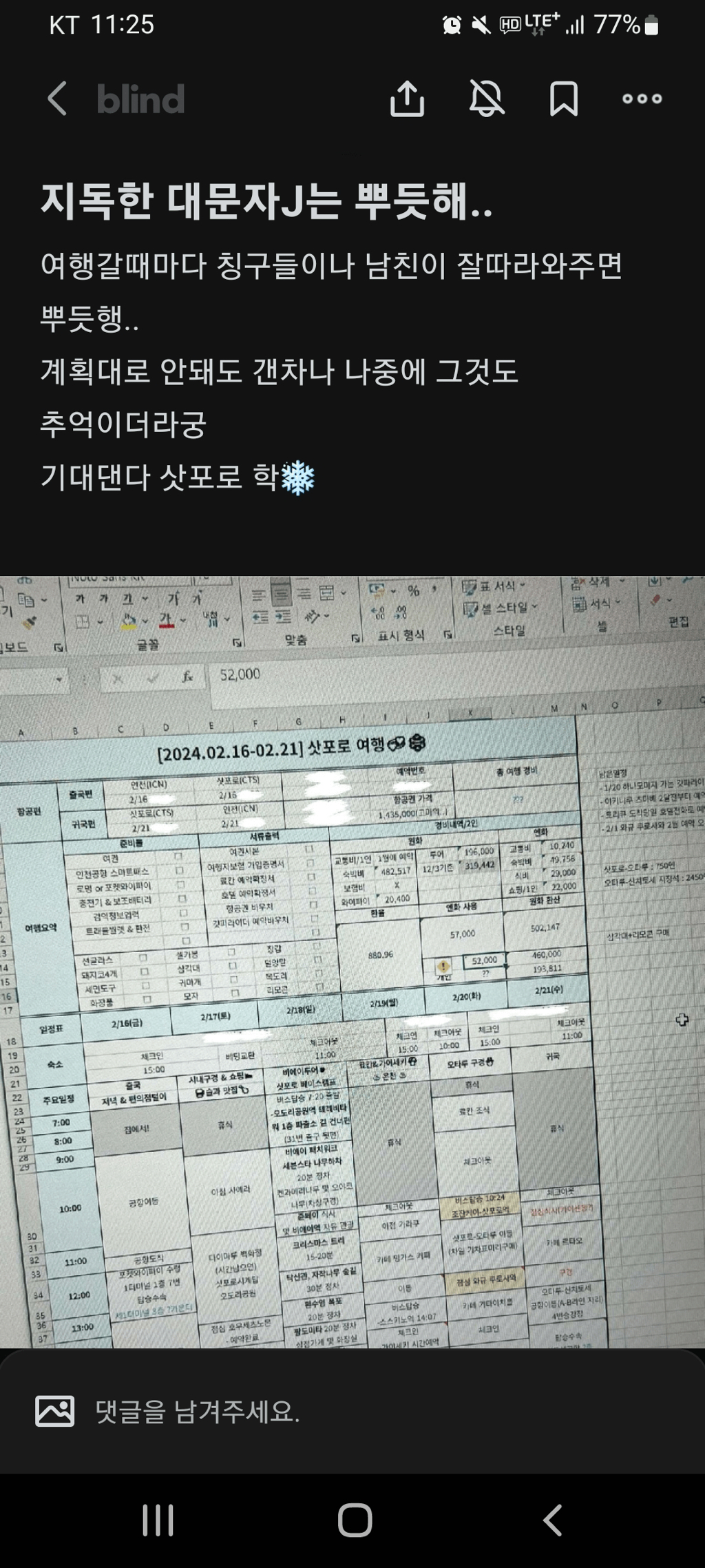 지독한 대문자 J의 흔한 여행계획.jpg 작성자LEE NAKYUNG|작성시간26.01.05|조회수45,836 목록 댓글 57 글자크기 작게가 글자크기 크게가 다음검색 현재 게시글 추가 기능 열기 북마크 공유하기 신고 센터로 신고 댓글 댓글 57 댓글쓰기 답글쓰기 댓글 리스트 작성자흐헝흐헝 | 작성시간 26.01.05 ㅋㅋㅋㅋ난 여친이랑 터키 여행갈때 비행기랑 숙소 렌트카만 예약하고 갔는데 작성자Taupe | 작성시간 26.01.06 작성자페로리 | 작성시간 26.01.06 ㅋㅋㅋ양식 갖고싶다 작성자앙기모뤼 | 작성시간 26.01.06 좋은데? 작성자코노처돌이 | 작성시간 26.01.06 어우....난 힘듬 댓글 전체보기
