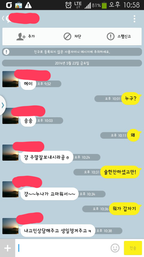 누구? 했을때 송송 이라고 한걸 보아 진짜 친추는 안되어있던거 같음 -