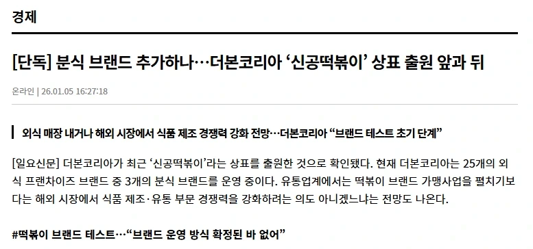 떡볶이 브랜드 출원 앞둔 더본코리아 작성자둘기얏|작성시간26.01.06|조회수6,913 목록 댓글 5 글자크기 작게가 글자크기 크게가 다음검색 현재 게시글 추가 기능 열기 북마크 공유하기 신고 센터로 신고 댓글 댓글 5 댓글쓰기 답글쓰기 댓글 리스트 작성자도마도보끔 | 작성시간 26.01.06 왜 빽오뎅볶이로 안함? 답댓글 작성자3334444 | 작성시간 26.01.06 내 떡볶이 아녜유 못하니깐 작성자루나틱소울 | 작성시간 26.01.06 안먹음ㅋㅋ 작성자슈퍼갤럭시비누 | 작성시간 26.01.06 엥ㅋㅋ 작성자내심장의색깔은블루 | 작성시간 26.01.06 와타시여 댓글 전체보기