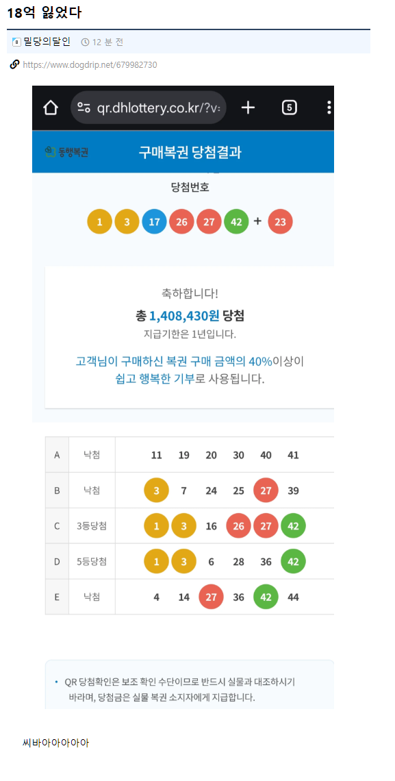 도탁스 (DOTAX) 실시간 18억 날린 개드립 유저 작성시간26.01.10|조회수43,899 목록 댓글 11 글자크기 작게가 글자크기 크게가 으이구 1, 3 다음은 당연히 17이지! 다음검색 현재 게시글 추가 기능 열기 북마크 공유하기 신고 센터로 신고 댓글 11 댓글 리스트 작성시간 26.01.10 3등도 기분 좋았는데 작성시간 26.01.10 주식 몰빵 하니까 3등으론 만족할수없는 몸이 돼버림 작성시간 26.01.11 ㅋㅋㅋㅋㅋㅋ 작성시간 26.01.11 저두 2등 5개 놓침 ㅜㅜ 이미지 확대 작성시간 26.01.11 3등도 어케되는거야 4등도 안되봤는데 카페 방문해 더 많은 댓글 만나기!