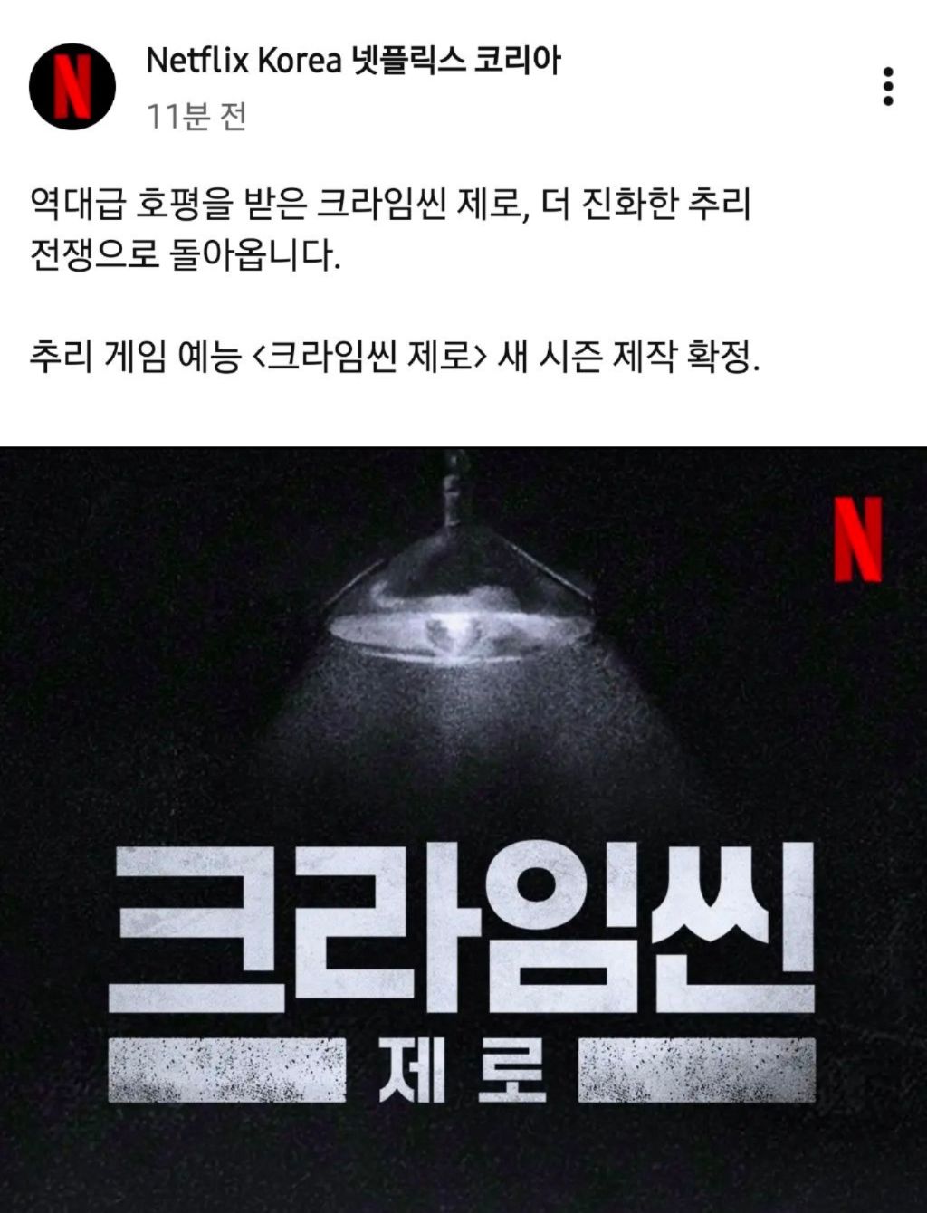 도탁스 (DOTAX) <크라임씬 제로> 새 시즌 제작 확정 작성시간26.01.13|조회수5,313 목록 댓글 40 글자크기 작게가 글자크기 크게가 다음검색 현재 게시글 추가 기능 열기 북마크 공유하기 신고 센터로 신고 댓글 40 댓글 리스트 작성시간 26.01.13 나이사!!!!!!! 제발 격주로 나와도 되니까 에피소드 늘려줘 제발 작성시간 26.01.13 리제로 ㄷㄷ 작성시간 26.01.13 드가자~~ 작성시간 26.01.13 굿 작성시간 26.01.14 굿굿 카페 방문해 더 많은 댓글 만나기!