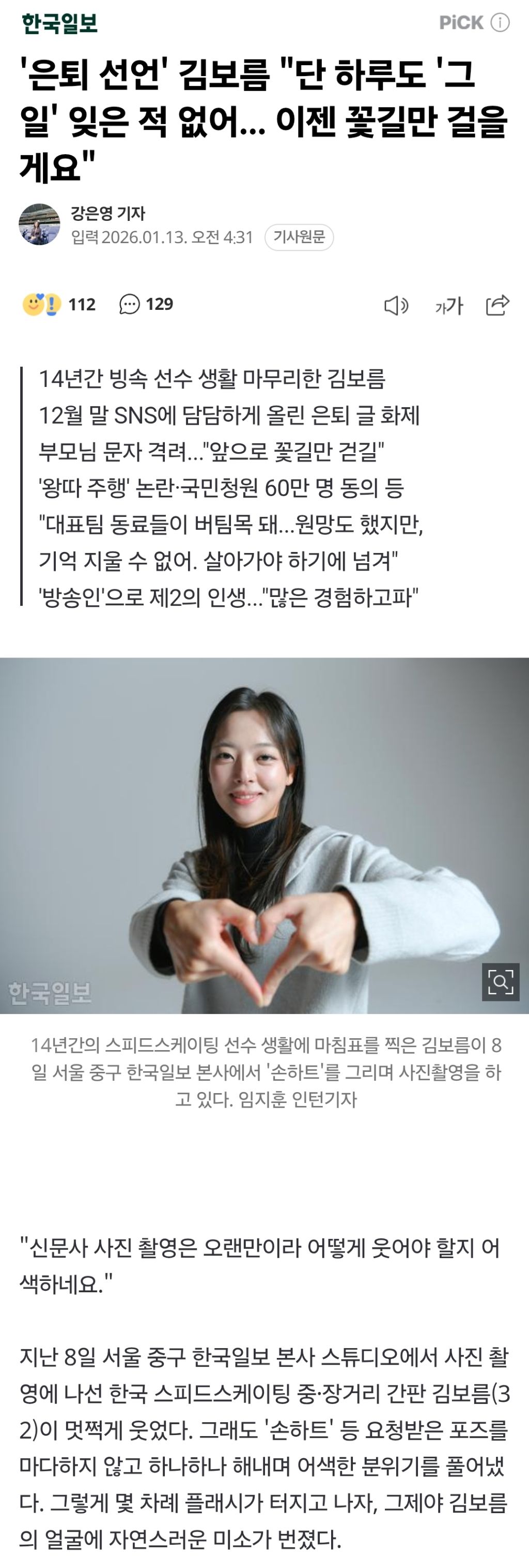 답댓글 작성시간 26.01.13 와 당시 저도 김보름 욕했는데 충격이네요 김보름선수한테 죄송하네요 ㅠㅠ