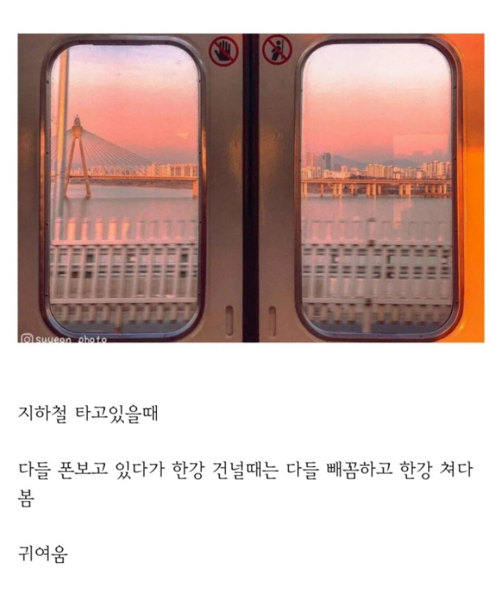 작성시간 26.01.14 퇴근길이면 눈이 가는데, 한강이 좋은 것도 있지만, 그냥 멀리까지 트인 풍경이 좋음. 매일 건물 사이에서 하늘을 보려면 고개를 들어야 하지만 한강을 건널 땐 고개를 안들어도 하늘이 보이니깐.