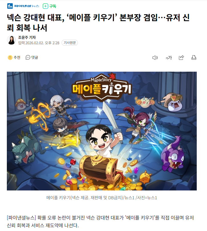작성시간 26.02.02 그냥 넥슨 게임하면 주작 당연히 있다고 생각하고 겜해야지 빨리 걸려서 사료나 뿌려라 하고 하는게 속편함