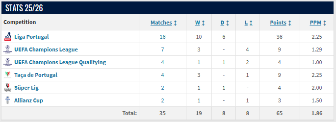 35경기 19승 8무 8패이고, 챔스는 16강 플레이오프, 리그는 3위 중