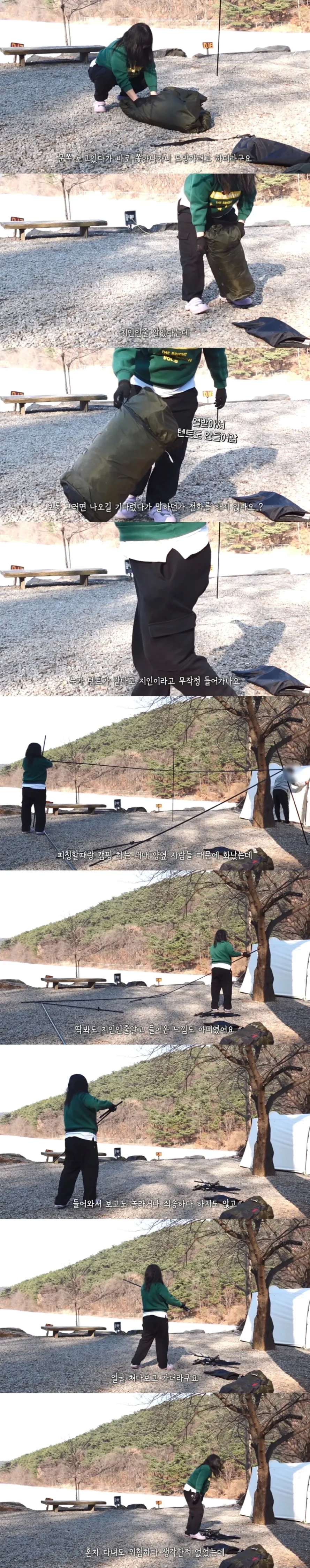 작성시간 26.02.02 캠핑 취미인 친구 따라 캠핑장 갔다가 도대체 스트레스 받아가면서 왜 밖에서 자는지 이해불가더군요 캠핑장에 꼭 이상한 사람 하나쯤 있는듯