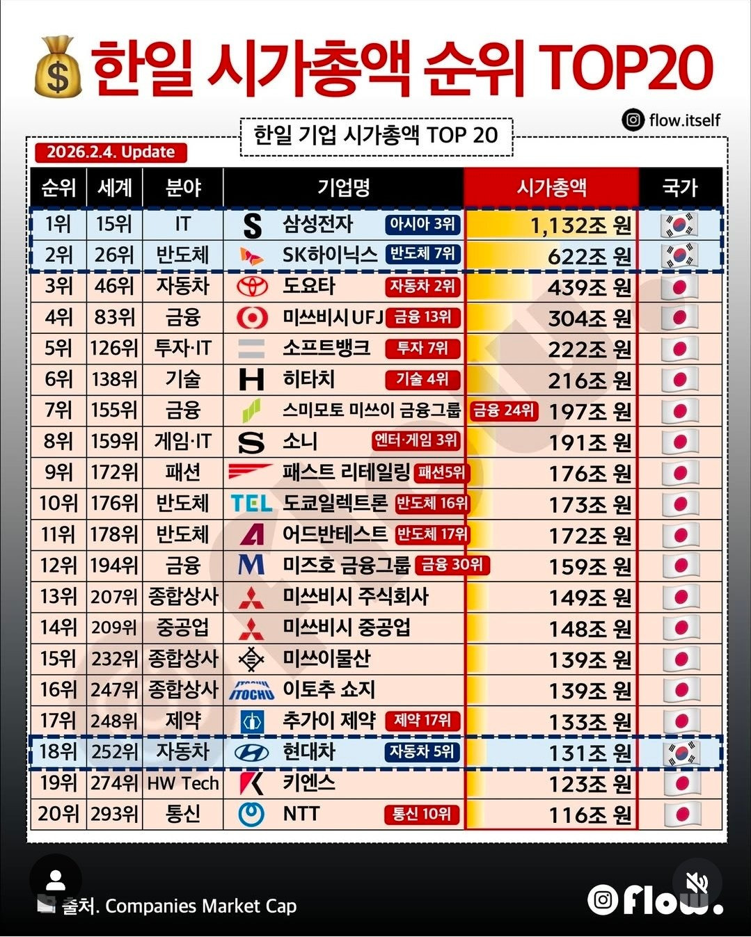 작성시간 26.02.06 소니가 현대차보다 높다는게 좀 충격이네 ㄷ