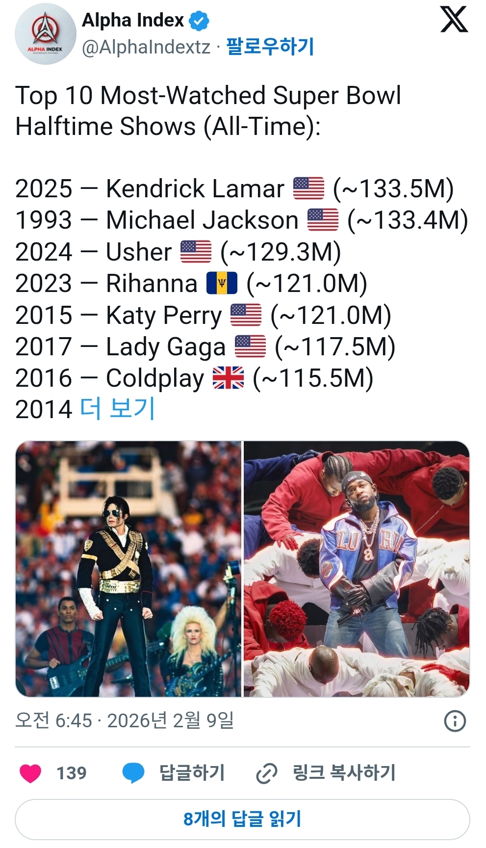 작성시간 26.02.09 마잭 덕분에 지금의 하프타임쇼 생긴거로 암