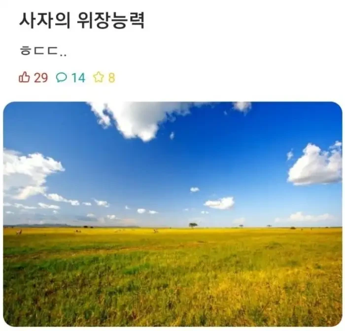 도탁스 (DOTAX) 사자의 위장능력 ㄷㄷ 작성시간26.02.17|조회수13,493 목록 댓글 8 글자크기 작게가 글자크기 크게가 다음검색 현재 게시글 추가 기능 열기 북마크 공유하기 신고 센터로 신고 댓글 8 댓글 리스트 작성시간 26.02.17 ㅋㅋㅋㅋㅋㅋ 작성시간 26.02.17 아 한참 찾았넼ㅋㅋㅋㅋㅋㅋ 작성시간 26.02.17 이쇼키가 ㅋㅋㅋㅋ 작성시간 26.02.17 작성시간 26.02.17 ㅋㅋㅋㅋㅋㅋㅋㅌㅌㅌ 카페 방문해 더 많은 댓글 만나기!