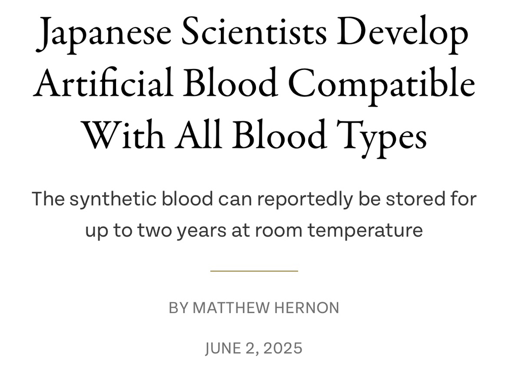 일본 나라대학 히로미 사카이 교수 연구팀은 혈액형 항원이 없는 인공 혈액 개발에 성공