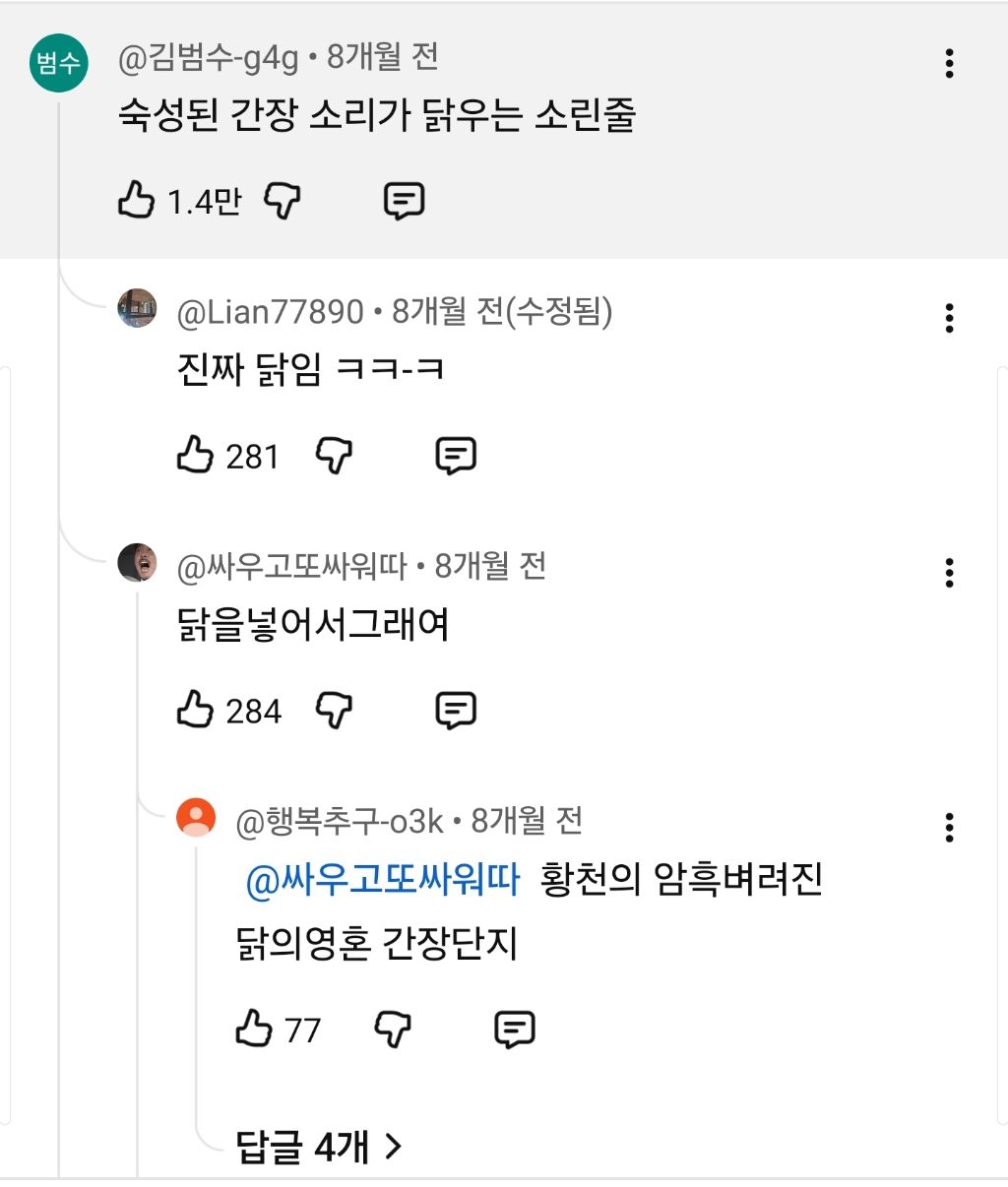 도탁스 (DOTAX) 오래 숙성된 간장에서 나는 소리 댓글 근황 작성시간26.02.22|조회수26,939 목록 댓글 7 글자크기 작게가 글자크기 크게가 https://youtube.com/shorts/n1Sv0ARPQA0?si=erSJllg0ayQoHRuV 다음검색 현재 게시글 추가 기능 열기 북마크 공유하기 신고 센터로 신고 댓글 7 댓글 리스트 작성시간 26.02.22 케데헌ㅋㅋㅋㅋㅋㅋㅋㄱㅋㅋ 작성시간 26.02.22 케데헌 은퇴 후 ㅋㅋㅋㅋ 작성시간 26.02.22 소이팝 ㅋㅋㅋㅋ 작성시간 26.02.22 이 닭이 혹시 그댁 닭이오??? 이미지 확대 작성시간 26.02.22 소이팝ㅋㅋㅋ 카페 방문해 더 많은 댓글 만나기!