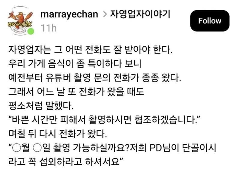 유튜버 음식점 협찬 후기 작성자내꿈은롯데우승보ㄱI|작성시간26.03.22|조회수14,452 목록 댓글 8 글자크기 작게가 글자크기 크게가 다음검색 현재 게시글 추가 기능 열기 북마크 공유하기 신고 센터로 신고 댓글 댓글 8 댓글쓰기 답글쓰기 댓글 리스트 작성자Dzeko | 작성시간 26.03.22 와... 음식값도 계산 ㄷㄷ 작성자나 따위가 무슨. | 작성시간 26.03.22 갓양 작성자공갈빵 | 작성시간 26.03.22 음식값 안받아도 ㅋㅋ 개이득 ㅋㅋ 이건데미담으로써 홍보도 더 함 작성자아리곤 | 작성시간 26.03.22 사람이 진짜 선한듯 작성자Hacker | 작성시간 26.03.22 보증수표에 ㄹㅇ 댓글 전체보기