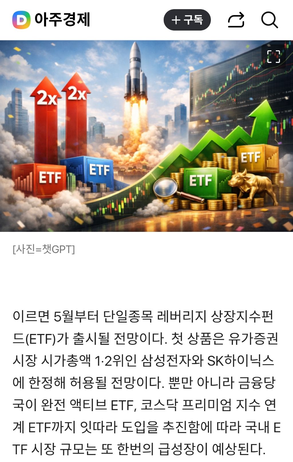 드디어 나온다...삼성전자·SK하이닉스 2배 ETF 5월 출시 작성자밍글스|작성시간26.03.22|조회수6,247 목록 댓글 33 글자크기 작게가 글자크기 크게가 다음검색 현재 게시글 추가 기능 열기 북마크 공유하기 신고 센터로 신고 댓글 댓글 33 댓글쓰기 답글쓰기 댓글 리스트 작성자Juliana | 작성시간 26.03.22 빨리 나왔어야지 작성자섬머너즈워 | 작성시간 26.03.22 etf면 최소 10개종목들어가야하는데 머지미장꺼 말하는건가 답댓글 작성자체크카드 | 작성시간 26.03.23 이번에 개별종목 etf를 허용해 줬습니다. 그것도 레버러지로 작성자찬양 | 작성시간 26.03.22 곱버스는요?????? 작성자킬링미 | 작성시간 26.03.23 이미 삼전에 다 들어가서 돈이없네 더사면 좋겠믄데 댓글 전체보기
