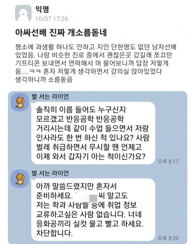 작성자부유한자취생 작성시간 26.03.24 난 저 선배가 무슨 상황이었을지 상상됨