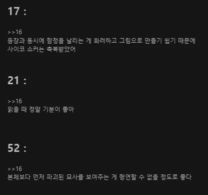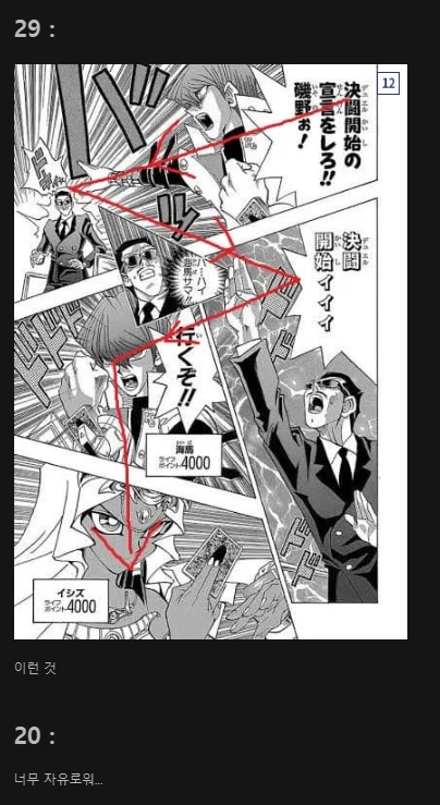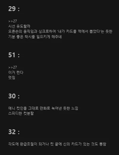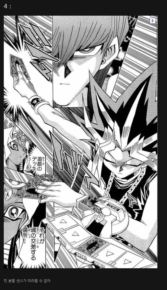 답댓글 작성자도따꾸뷰르딱 작성시간 26.03.24 원래는 지금과 같은 카드배틀 만화로 계획하지 않앗다고 들었는데.. 그냥 단순히 학교에서 카드배틀 보드게임 느낌으로 잠깐 그렸는데 그게 반응이 너무 좋아서 카드배틀로 노선 바꿨다고 들음