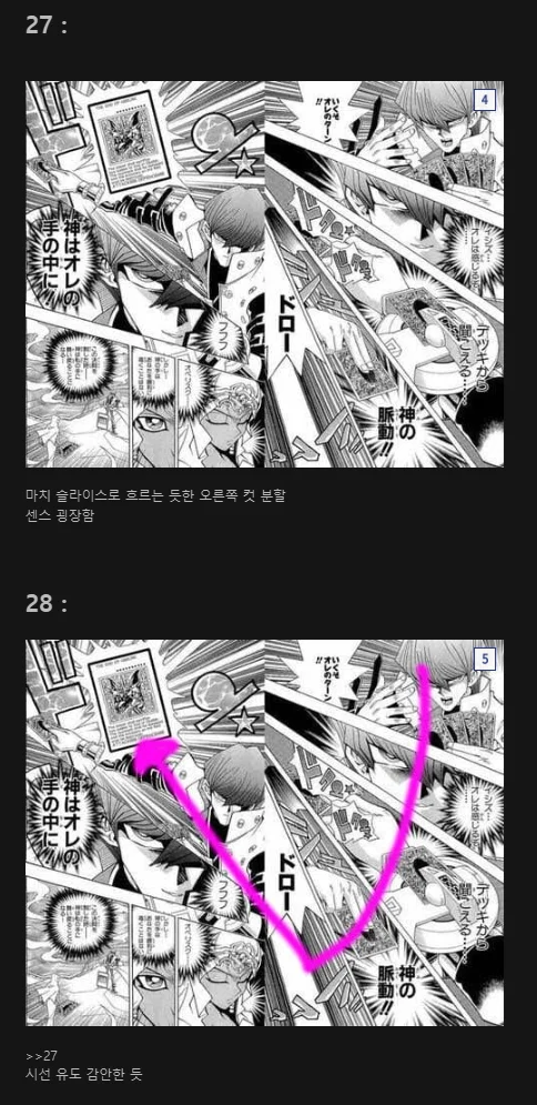 시선 유도, 동시라는 시간 개념도 소화하는 유니크한 컷 분할