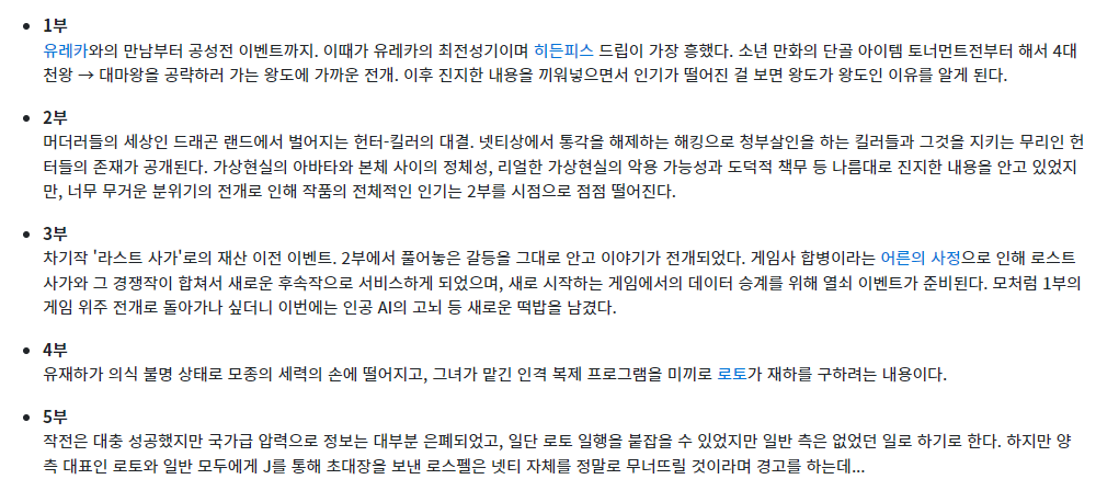 작성자그님티 작성시간 26.03.27 1부가 진짜 레전드엿음. 게임의 설정도 매력적이였고. 가상현실 게임이 주무대가 아니면서 서서히 재미없어지고.. 줄거리도 중구난방되버림.