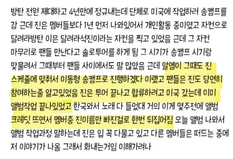 3. 앨범 제작에 들어갔는데 6인이 진을 기다리지 않고 빠르게 작업을 들어가버려서