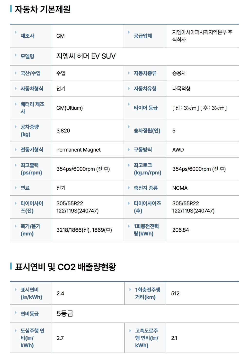 1회 충전 주행거리 : 512 km