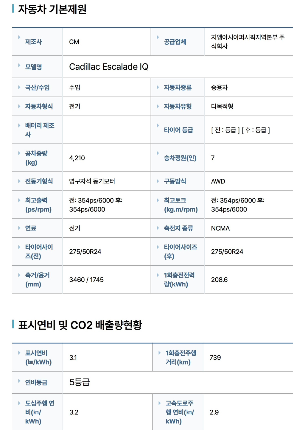 1회 충전 주행거리 : 739 km