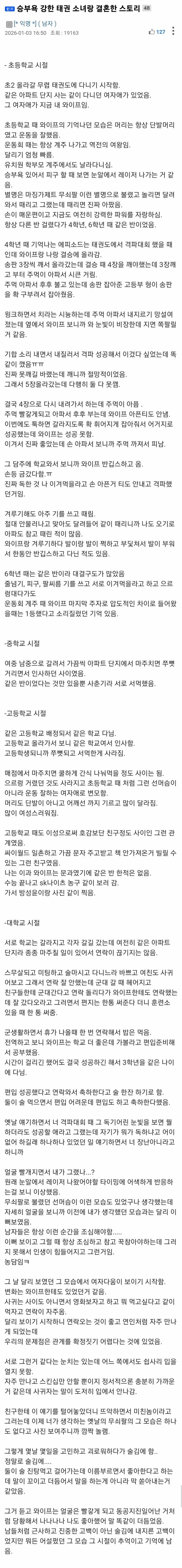 승부욕 강한 태권소녀랑 결혼한 이야기 작성자깁미두쫀쿠|작성시간26.03.30|조회수5,357 목록 댓글 23 글자크기 작게가 글자크기 크게가 다음검색 현재 게시글 추가 기능 열기 북마크 공유하기 신고 센터로 신고 댓글 댓글 23 댓글쓰기 답글쓰기 댓글 리스트 작성자애플파이가좋아 | 작성시간 26.03.30 진짜 보기 좋네요 ㅋㅋㅋ근데 어머니한테 맞고 예절교육된 아들 귀엽네 ㅋㅋㅋㅋㅋㅋ 작성자상담소 | 작성시간 26.03.30 크 작성자까까오까까 | 작성시간 26.03.30 인생 성공했네.. 작성자따뜻한봄바람 | 작성시간 26.03.31 순 애 좋 아 작성자리로이 | 작성시간 26.03.31 슬픈엔딩일까봐 조마조마하면서 읽었네 ㅋㅋㅋ 댓글 전체보기