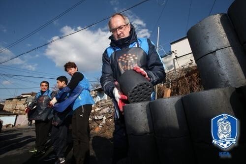 적지않은 연세에도 저소득층에 직접 연탄봉사