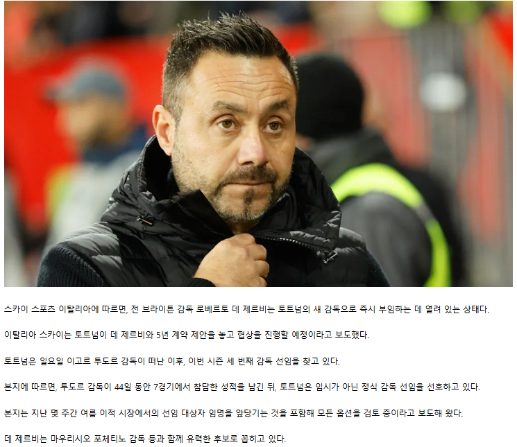 토트넘, 전 브라이튼 감독 데 제르비 계약 협상중 작성자둘기얏2|작성시간26.03.30|조회수2,421 목록 댓글 2 글자크기 작게가 글자크기 크게가 다음검색 현재 게시글 추가 기능 열기 북마크 공유하기 신고 센터로 신고 댓글 댓글 2 댓글쓰기 답글쓰기 댓글 리스트 작성자이근삼 | 작성시간 26.03.30 안돼 시발 작성자오라버니 | 작성시간 26.03.30 곧 뜨겠네ㄷㄷ 댓글 전체보기