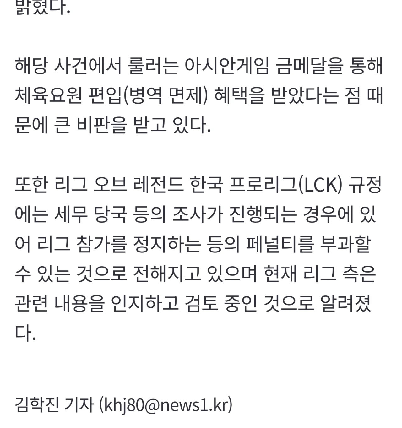 "차은우와 흡사"…항저우 金 게이머 '룰러' 박재혁 조세 회피 의혹 작성자존예보스예지|작성시간26.04.01|조회수2,250 목록 댓글 6 글자크기 작게가 글자크기 크게가 기사전문 : https://naver.me/G5kuZy7u"차은우와 흡사"…항저우 金 게이머 '룰러' 박재혁 조세 회피 의혹항저우 아시안게임 금메달로 병역 면제 혜택까지 받은 국내 최정상급 프로게이머 '룰러' 박재혁이 조세 회피 논란에 휘말리면서 세무당국과의 분쟁이 발생한 사실이 뒤늦게 드러났다. 30일 조세n.news.naver.com 다음검색 현재 게시글 추가 기능 열기 북마크 공유하기 신고 센터로 신고 댓글 댓글 6 댓글쓰기 답글쓰기 댓글 리스트 작성자탑툰 | 작성시간 26.04.01 룰러는 몇 은우했지 작성자Function(팡션) | 작성시간 26.04.01 I go 작성자아리곤 | 작성시간 26.04.01 세금도 내고 군대도 가야겠지? 작성자전기쌍기사 | 작성시간 26.04.01 군대 가즈아ㅏㅏ 작성자비앙끄 | 작성시간 26.04.01 의혹이에요? 다 확인까지 된거 아닌가 댓글 전체보기