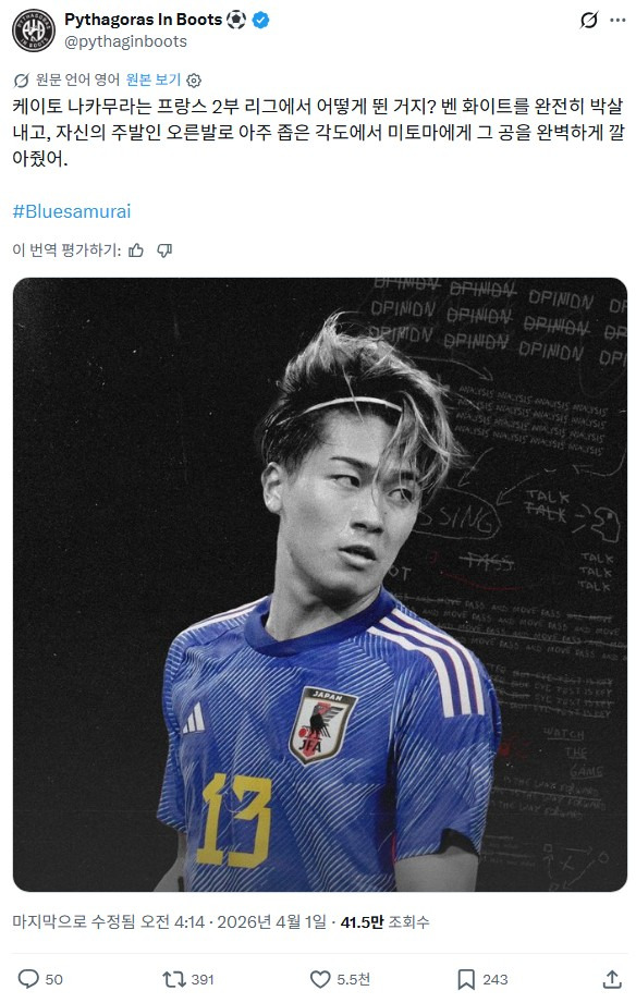 오늘 아스날 벤 화이트를 탈탈 털었다는 일본 나카무라 케이토.gif 작성자졸려서미치겠어|작성시간26.04.01|조회수3,475 목록 댓글 7 글자크기 작게가 글자크기 크게가 다음검색 현재 게시글 추가 기능 열기 북마크 공유하기 신고 센터로 신고 댓글 댓글 7 댓글쓰기 답글쓰기 댓글 리스트 답댓글 작성자귀찮아 | 작성시간 26.04.02 그렇게 카가와 샀다가 개폭망을.. 작성자JHTAR | 작성시간 26.04.02 뭔가 동작들이 로시츠키 느낌 나는데 작성자J.S.PARK | 작성시간 26.04.02 예전 흰둥이가 아니야 ㅠ 작성자돌아왔다 | 작성시간 26.04.02 진짜 성실하게 뛰던데 작성자페리오 | 작성시간 26.04.02 부럽다 댓글 전체보기