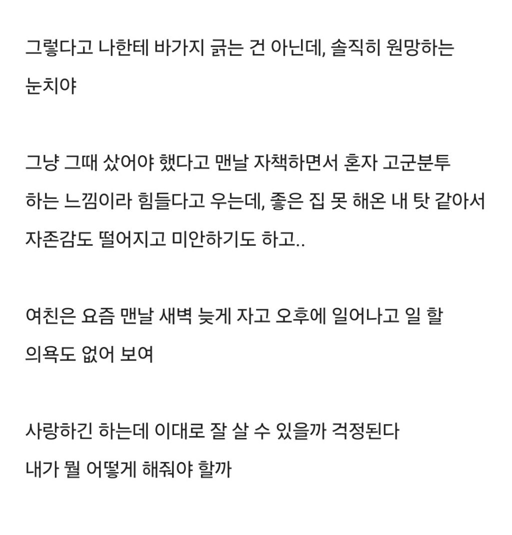 작성자애숭모 작성시간 26.04.03 나 아는 언니도 예전에 대출끼고 아파트 사려고 할때 형부가 걍 전세 있자고 해서 못사고 아파트값올라서 엄청 싸우고 형부 주말마다 알바 다니시더라