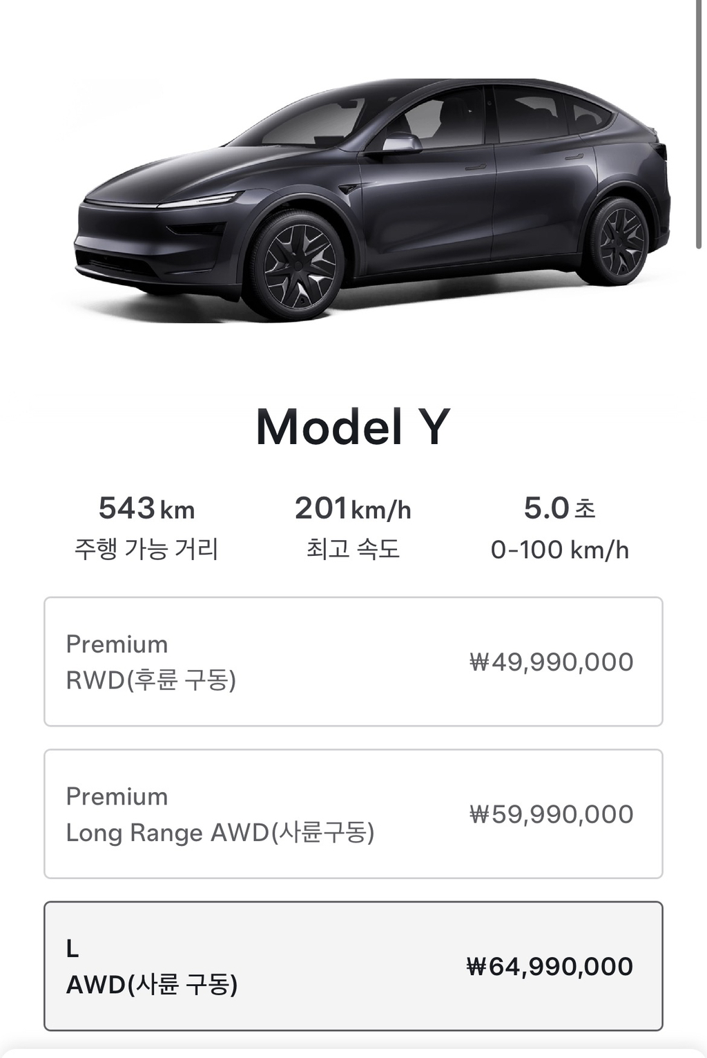 테슬라 모델 Y L 제원