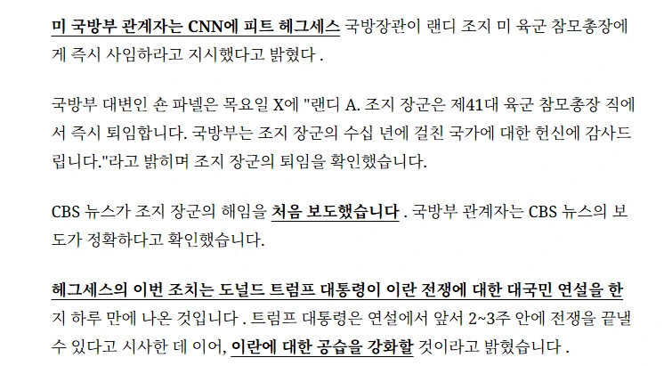 美 육군 참모총장 경질 작성자둘기얏2|작성시간26.04.03|조회수4,026 목록 댓글 8 글자크기 작게가 글자크기 크게가 다음검색 현재 게시글 추가 기능 열기 북마크 공유하기 신고 센터로 신고 댓글 댓글 8 댓글쓰기 답글쓰기 댓글 리스트 작성자할라할라할라 | 작성시간 26.04.03 병사들 사지로 모는일인데 반대했겄지.. 작성자천민에서 왕이되는 스토리 | 작성시간 26.04.03 육군둥절 ? 작성자미사리백수 | 작성시간 26.04.03 ㅅㅂ보통 갑작스러운 경질이면 뭔 개짓거리를 했길래.. 할텐데, 요즘은 뭔가 맞는 말했다가 팽당한거처럼 생각되네 ㅋㅋㅋㅋㅋㅋㅋ 작성자댓글이쁘게달기 | 작성시간 26.04.03 내전가나 ㄷㄷ 작성자은빛뀨 | 작성시간 26.04.03 충신이였나.. 댓글 전체보기