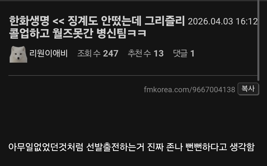 작성자룰룰루룰룰루 작성시간 26.04.03 징계가 안나왔더라도 안나오는게 맞지않나;;;;