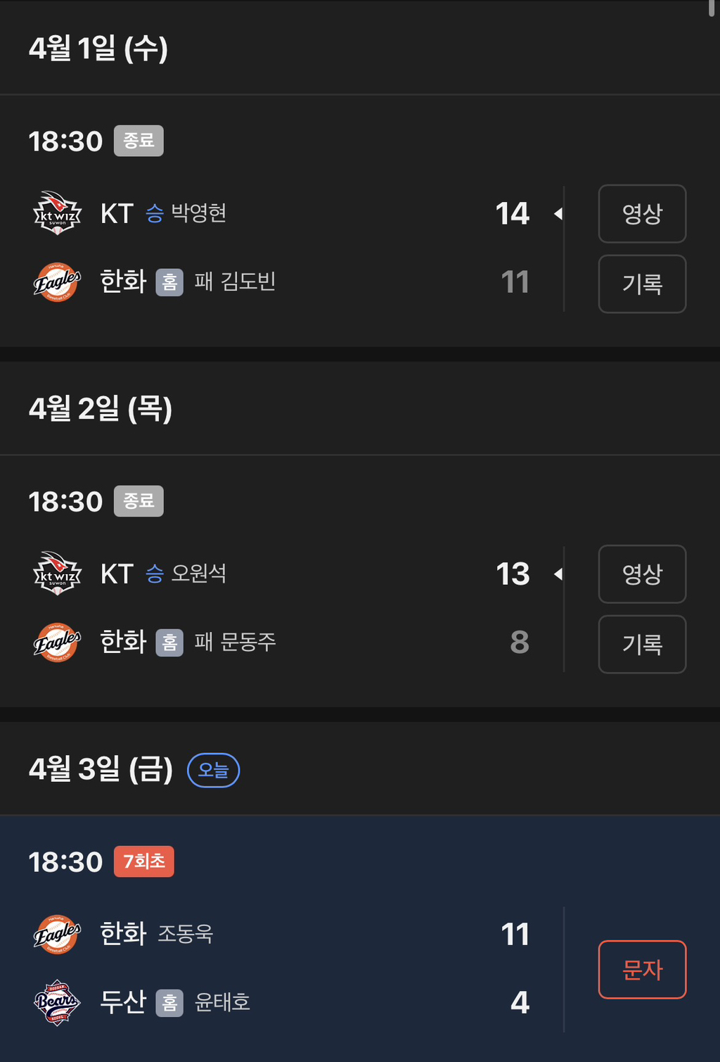 공격과 수비 극과극을 달리고 있는 한화이글스 작성자Mokoko|작성시간26.04.03|조회수7,362 목록 댓글 11 글자크기 작게가 글자크기 크게가 지금까지 득점 54 실점 53팀타율 1위 팀평균자책 1위 다음검색 현재 게시글 추가 기능 열기 북마크 공유하기 신고 센터로 신고 댓글 댓글 11 댓글쓰기 답글쓰기 댓글 리스트 답댓글 작성자캐네디언뎃빗 | 작성시간 26.04.04 하지만 300억이...1할 작성자브라운감사합니다 | 작성시간 26.04.03 제발야구를해.... 작성자그냥 지나가던 사람 | 작성시간 26.04.04 "해~체" 해 작성자백야 | 작성시간 26.04.04 작년투수에 이랫다면 작성자나 따위가 무슨. | 작성시간 26.04.04 하 댓글 전체보기