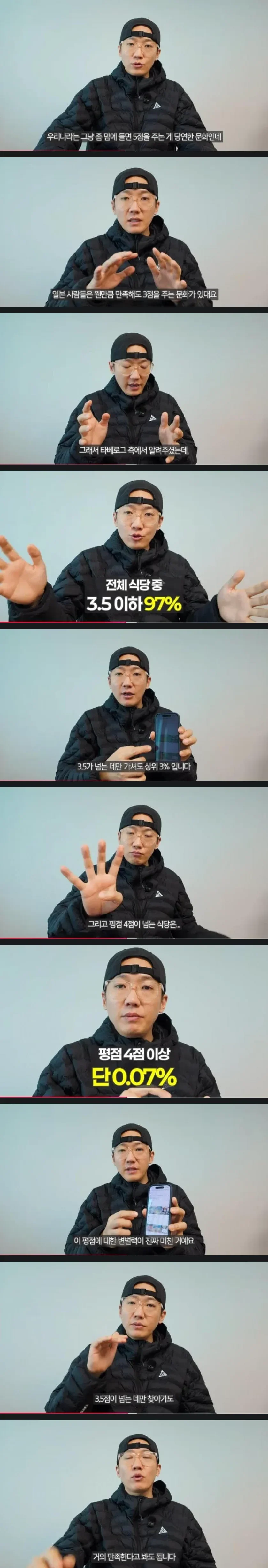 일본은 3점(보통) 디폴트라 3.5만 넘겨도 맛있는 집이구나 한다 함