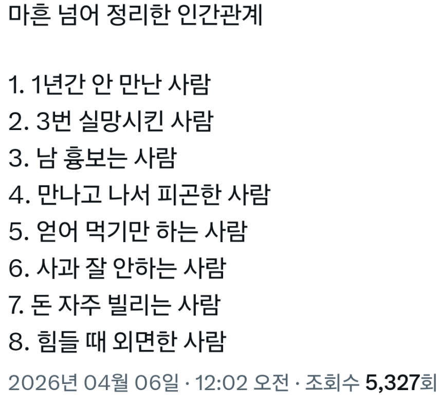 부모님 중 한분이 하늘나라로 갔을 때 인간관계 싹 정리됨...