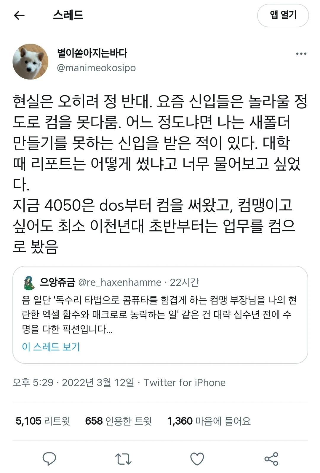 작성자월하랑 작성시간 26.04.08 지금 50대 초중반이면 dos부터 사용한 세대라, 저희(40대)보다 펑균적으로 잘하더라구요