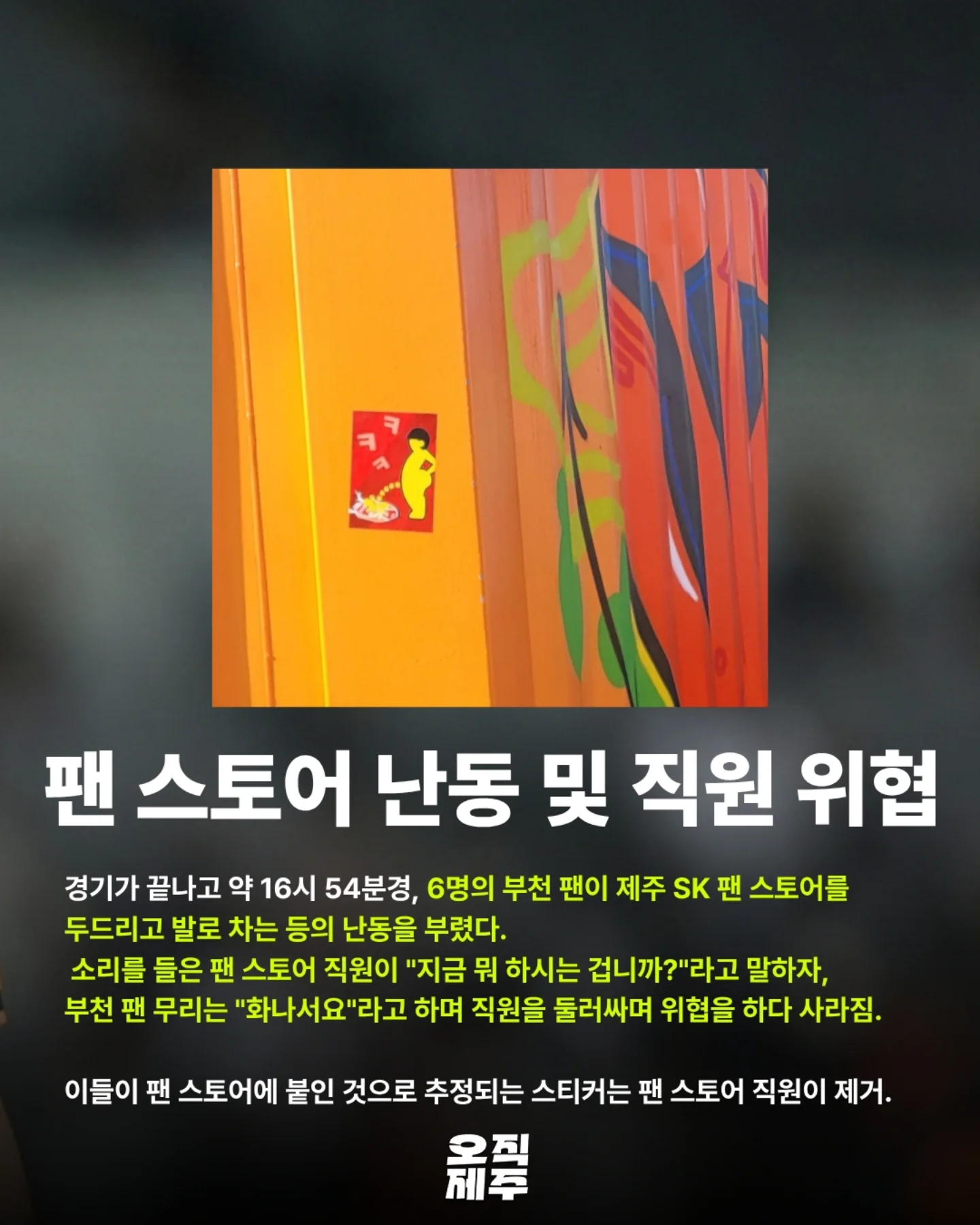 승격하고 패악질 부리고 다니는 부천FC 팬들.jpg 작성자헤이즈 heize|작성시간26.04.08|조회수3,633 목록 댓글 22 글자크기 작게가 글자크기 크게가 다음검색 현재 게시글 추가 기능 열기 북마크 공유하기 신고 센터로 신고 댓글 댓글 22 댓글쓰기 답글쓰기 댓글 리스트 작성자oak tree | 작성시간 26.04.08 심각해지면 승점 삭감 이런거 없나 작성자HLE Gumayusi | 작성시간 26.04.08 얘네가 국내 홀리건 원조라고 나무위키에서 본 듯 작성자디아블로3 | 작성시간 26.04.08 저게 벼슬인마냥 나대서 보기싫음 작성자자유분방한 명수옹 | 작성시간 26.04.08 천박하냐.. 일진놀이를 하고있어 작성자젠슨황 | 작성시간 26.04.08 이부망천 클라스 어디 안가죠? (본인 부천주민) 댓글 전체보기