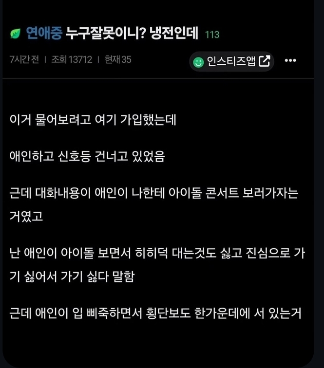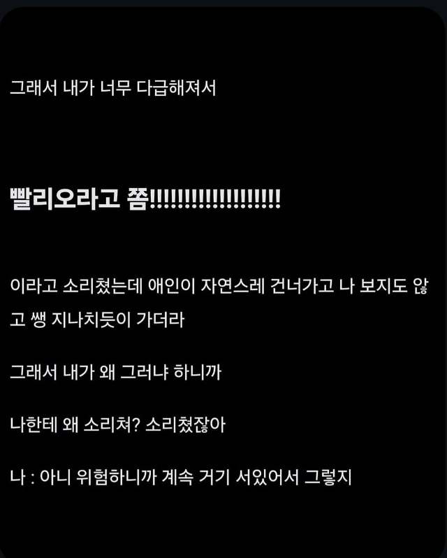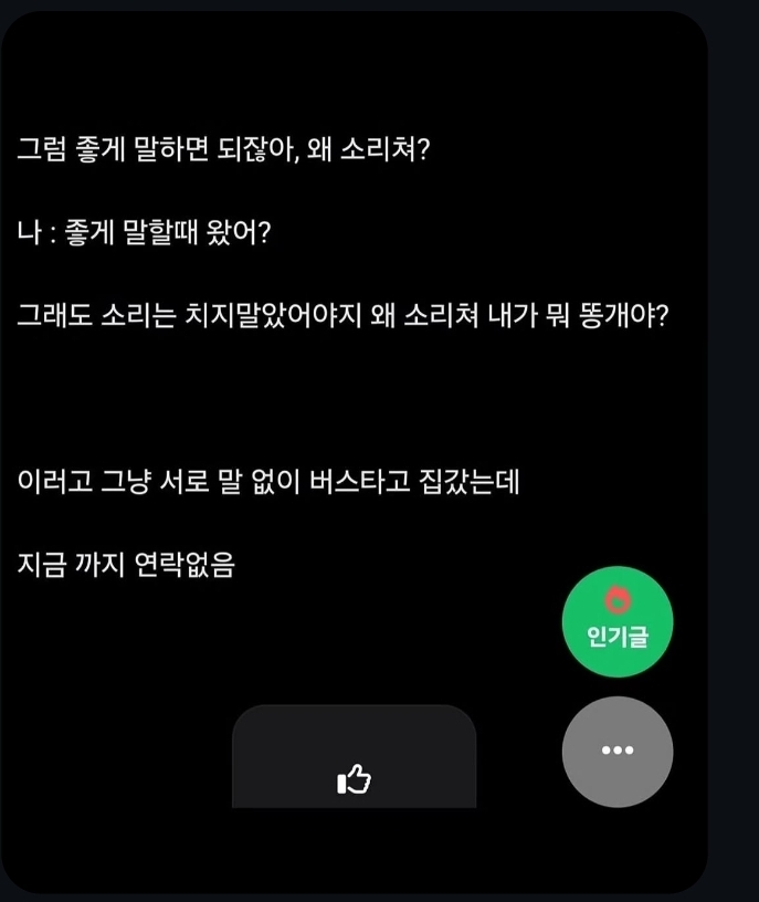 연애중 누구잘못이니? 냉전인데 작성자평범한자|작성시간26.04.08|조회수16,572 목록 댓글 65 글자크기 작게가 글자크기 크게가 여의도 환승센터 횡단보도길이는 왕복10차선도로 횡단할길이임 다음검색 현재 게시글 추가 기능 열기 북마크 공유하기 신고 센터로 신고 댓글 댓글 65 댓글쓰기 답글쓰기 댓글 리스트 작성자까슈 | 작성시간 26.04.08 진짜 무슨 애도아니고 작성자Taupe | 작성시간 26.04.08 아 작성자낑구 | 작성시간 26.04.08 지가 세상의 중심인줄 암 작성자알바아냐 | 작성시간 26.04.08 애초에 여자가 저렇게 하도록 오냐오냐 키운 글쓴이잘못임끝(사귄지 얼마안된거라면 바로 짤 하면됨) 작성자광주동네이장 | 작성시간 26.04.09 얼른 헤어져라 저딴 병신년한테 돈쓰고 시간쓰는거 아깝다 ㄹㅇ좋은 여자 널렸다 댓글 전체보기