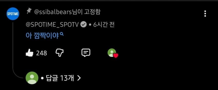 스포티비 “아 깜짝이야” 작성자내꿈은롯데우승보ㄱI|작성시간26.04.09|조회수4,320 목록 댓글 3 글자크기 작게가 글자크기 크게가 다음검색 현재 게시글 추가 기능 열기 북마크 공유하기 신고 센터로 신고 댓글 댓글 3 댓글쓰기 답글쓰기 댓글 리스트 작성자경우심 | 작성시간 26.04.09 ㅋㅋㅋㅋㅋ 작성자내가 그걸 몰랐었네 | 작성시간 26.04.09 작성자 원닉도 강렬하넼ㅋㅋㅋㅋㄱ 작성자조용한수다쟁이 | 작성시간 26.04.09 ㅋㅋㅋㅋㅋㅋㅋㅋㅋㅋㅋㅋㅋㅋㅋㅋㅋㅋㅋㅋㅋ 댓글 전체보기